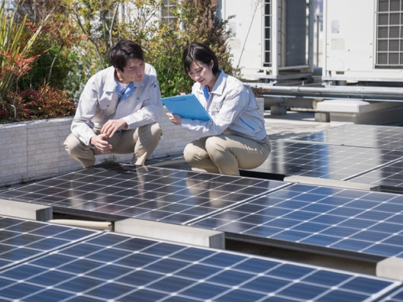 フロンティアジャパンでは環境提案アドバイザーが導入前にしっかりとしたプランをご提案。専門知識を習得した日本住宅性能検査協会認定の太陽光アドバイザーが多数在籍しているので十分な信頼のもと、太陽光発電システム導入までを徹底サポートします。豊富な知識をもとにご提案いたします。