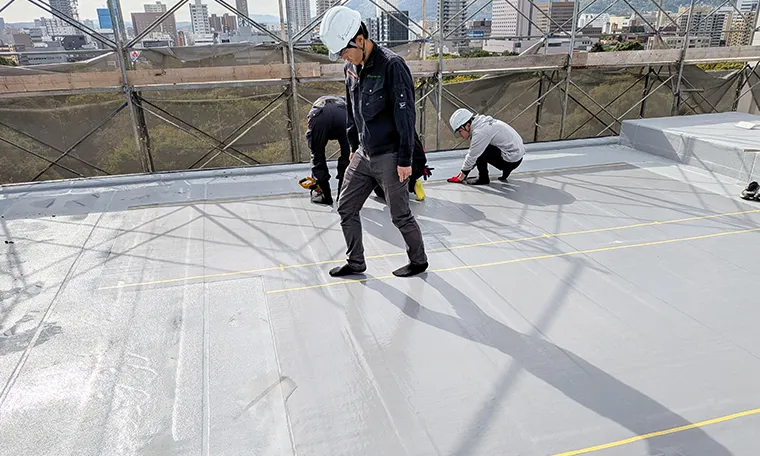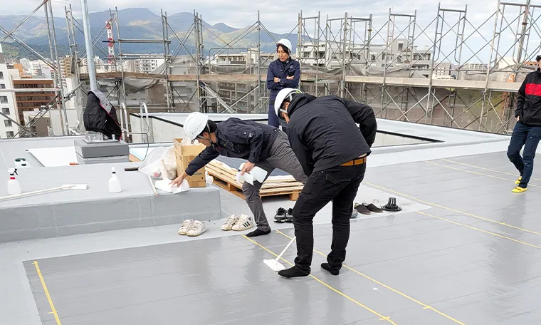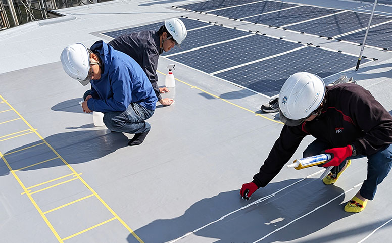 屋根・壁設置型フレキシブル太陽光パネル施工の様子